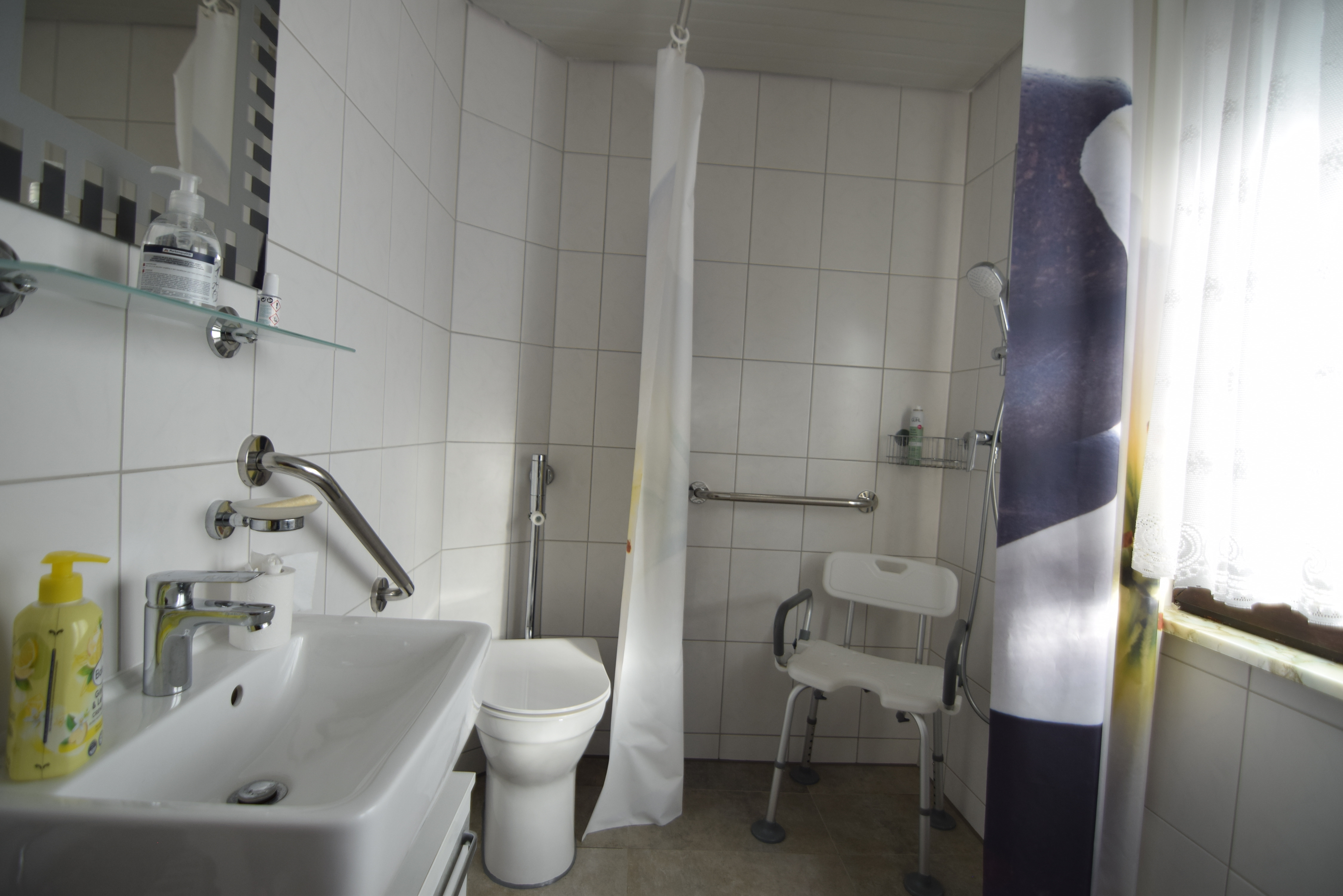 - Ausstattung des Bades Fenster, Dusche